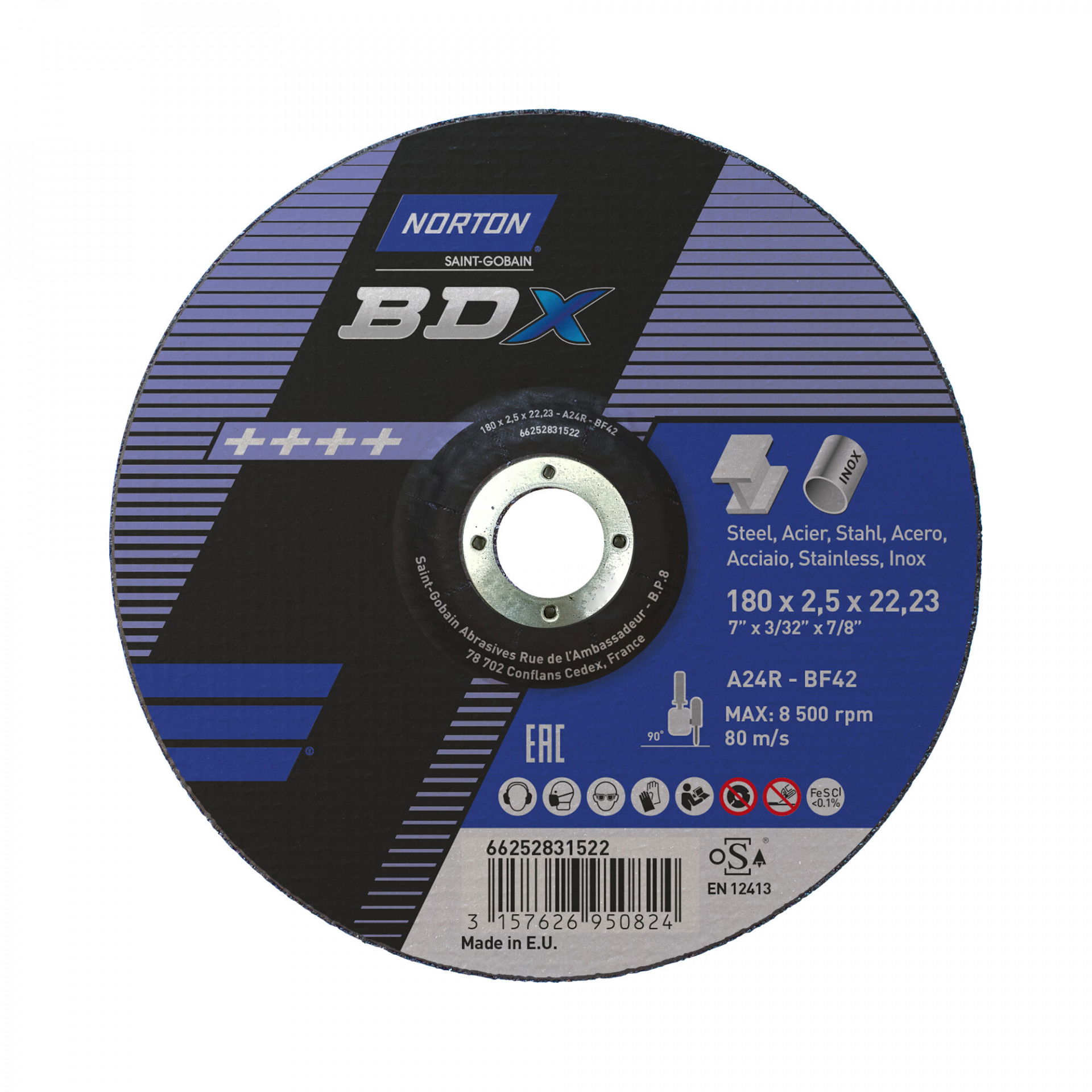 Norton BDX fém-inox vágókorong 180x2,5x22,23 A24R, 25 db/csomag