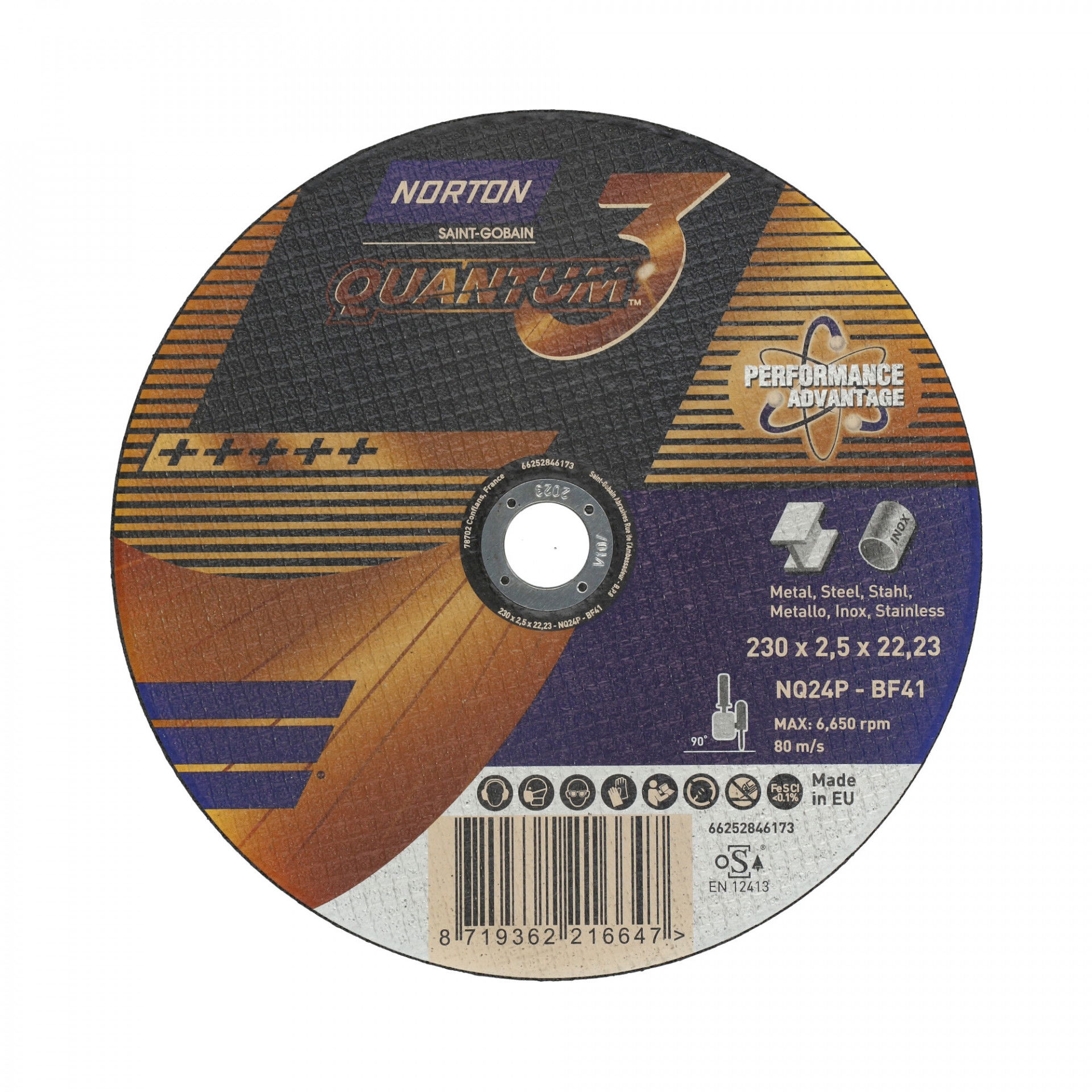 Norton Quantum3 fém-inox vágókorong 230x2,5x22,23mm, 25 db/csomag