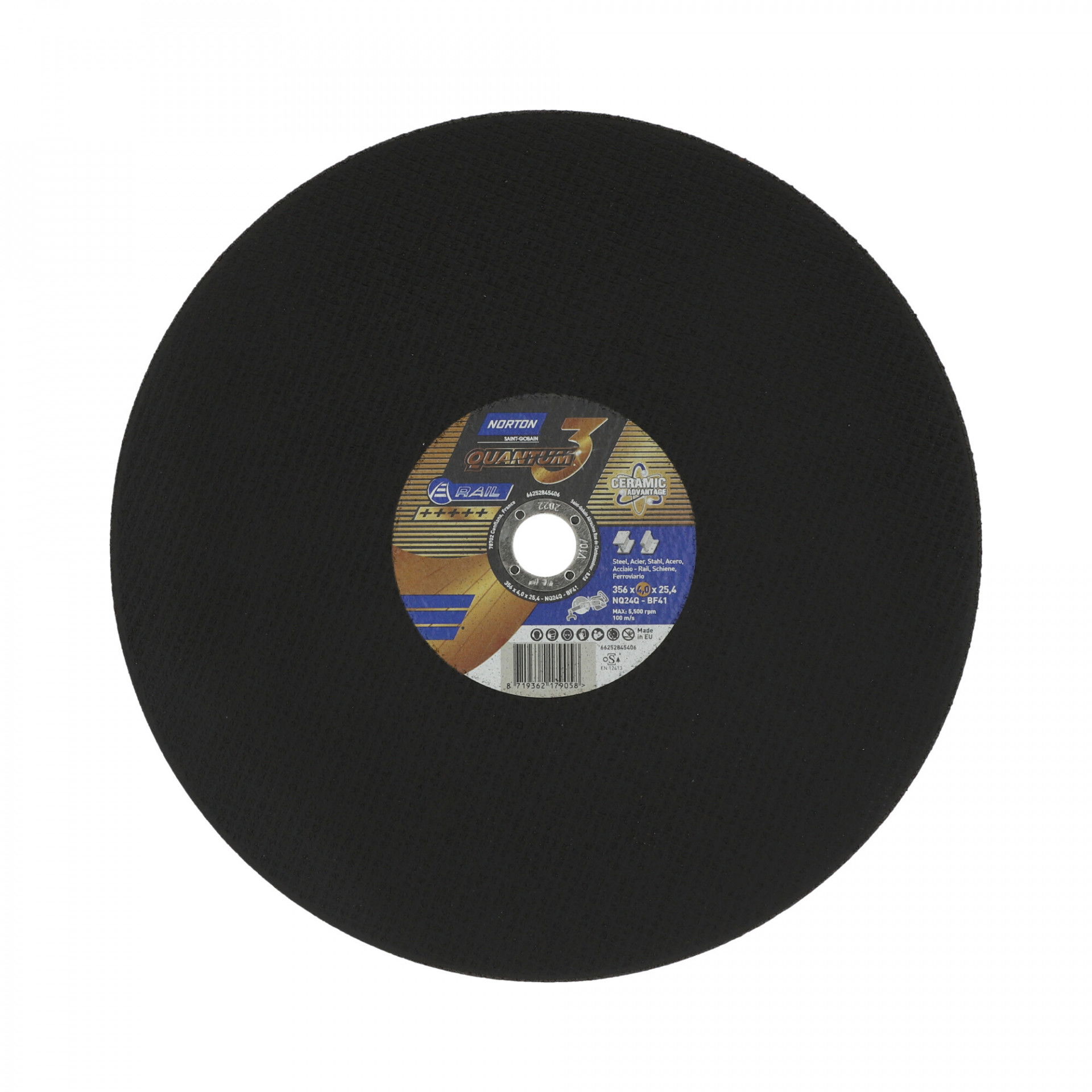 Norton Quantum 3 Rail vágókorongot úgy tervezték, hogy teljesítménye felülmúlja a piacon jelenleg kapható bármely más sínvágó tárcsát. A Norton Quantum3 piacvezető kerámiaszemcsékkel rendelkező Norton sínvágó tárcsák nemcsak gyorsabban távolítják el az anyagot, mint bármely konkurens termék, hanem sokkal kevesebb rezgést is mutatnak, mivel kisebb nyomást és erőt kell kifejteni az anyag vágásához – a kezelő csak hagyja, hogy a gép és a tárcsa elvégezze a munkát. Éles kerámiaszemcséje, amely alacsony nyomáson mikro-töredezett, és gyors, sima vágási műveletet biztosít, amely növeli az egyenes vágás esélyét. A termék hosszú élettartama csökkenti az adott projekthez szükséges vágókorongok számát a folyamat költségeinek csökkentése érdekében.